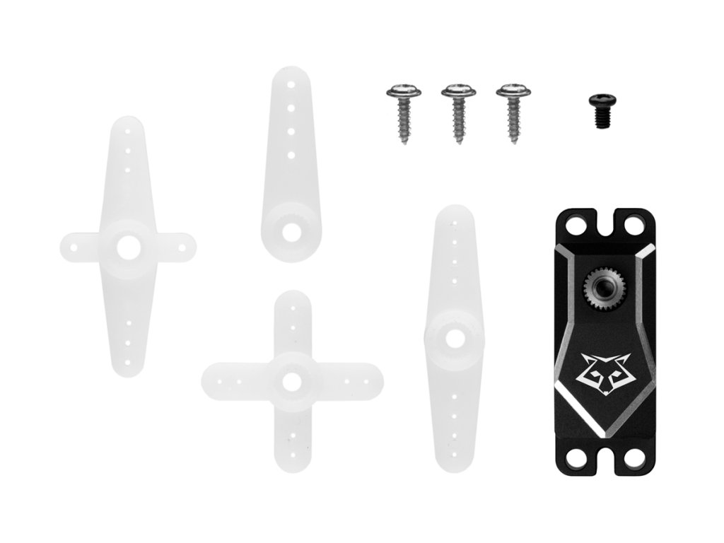 Silné a rychlé programovatelné digitální mikroservo s ocelovými převody s výstupní hřídelí uloženou na dvou kuličkových ložiscích pro použití v RC modelech všech typů. Díky ploché krabičce s výškou 12 mm je zvláště vhodné pro ovládání křidélek a klapek v modelech RC větroňů s tenčími profily křídla. Pro dokonalé chlazení i při vysokém zatížení je servo uloženo v hliníkové krabičce.