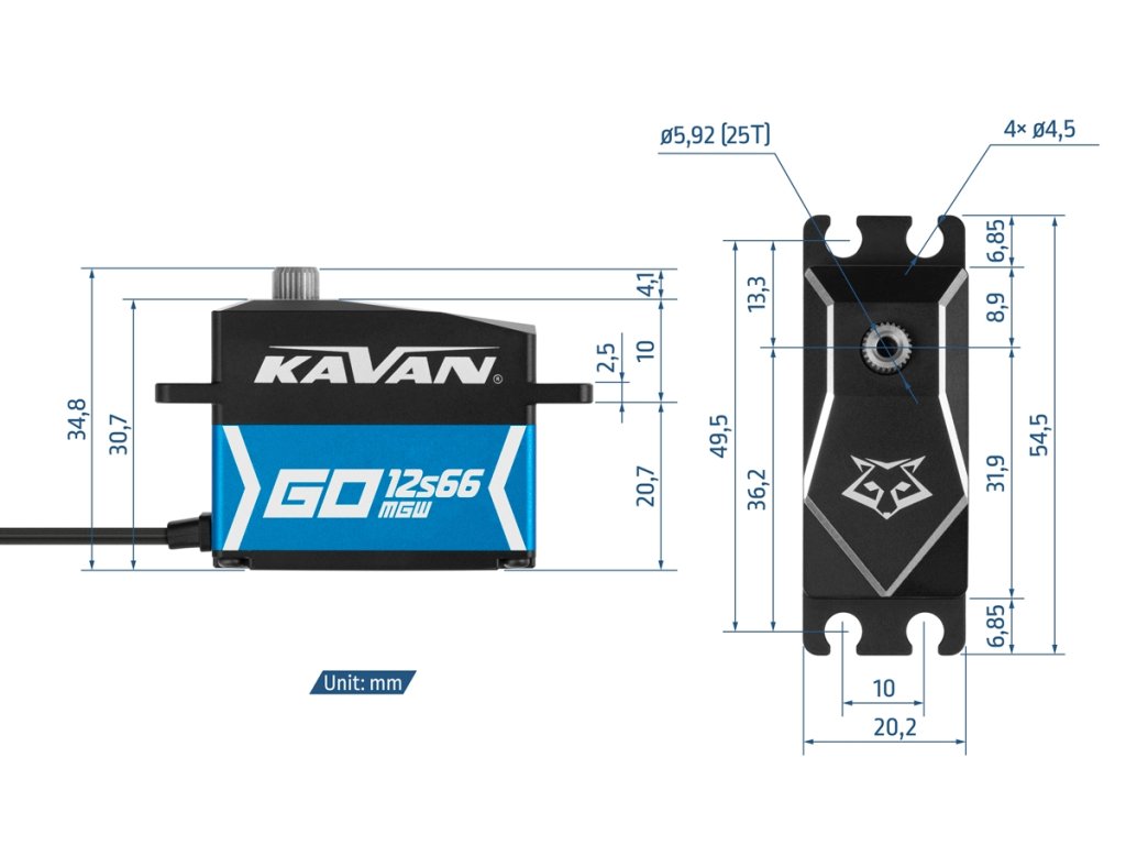 Velmi silné a super rychlé vodotěsné nízkoprofilové programovatelné digitální standardní servo se střídavým motorem, magnetickým enkodérem namísto potenciometru, ocelovými převody s výstupní hřídelí uloženou na dvou kuličkových ložiscích pro použití v RC modelech všech typů; ideální pro terénní RC auta 1:8/1:10, lodě a podobné náročné aplikace stejně jako pro modely ledadel i vrtulníků. Pro dokonalé chlazení i při vysokém zatížení a ochranu vůči nepříznivým vlivům okolního prostředí je servo uloženo ve vodotěsné/prachotěsné (standard IP67) hliníkové krabičce se střední částí tvořenou profilovým chladičem.
