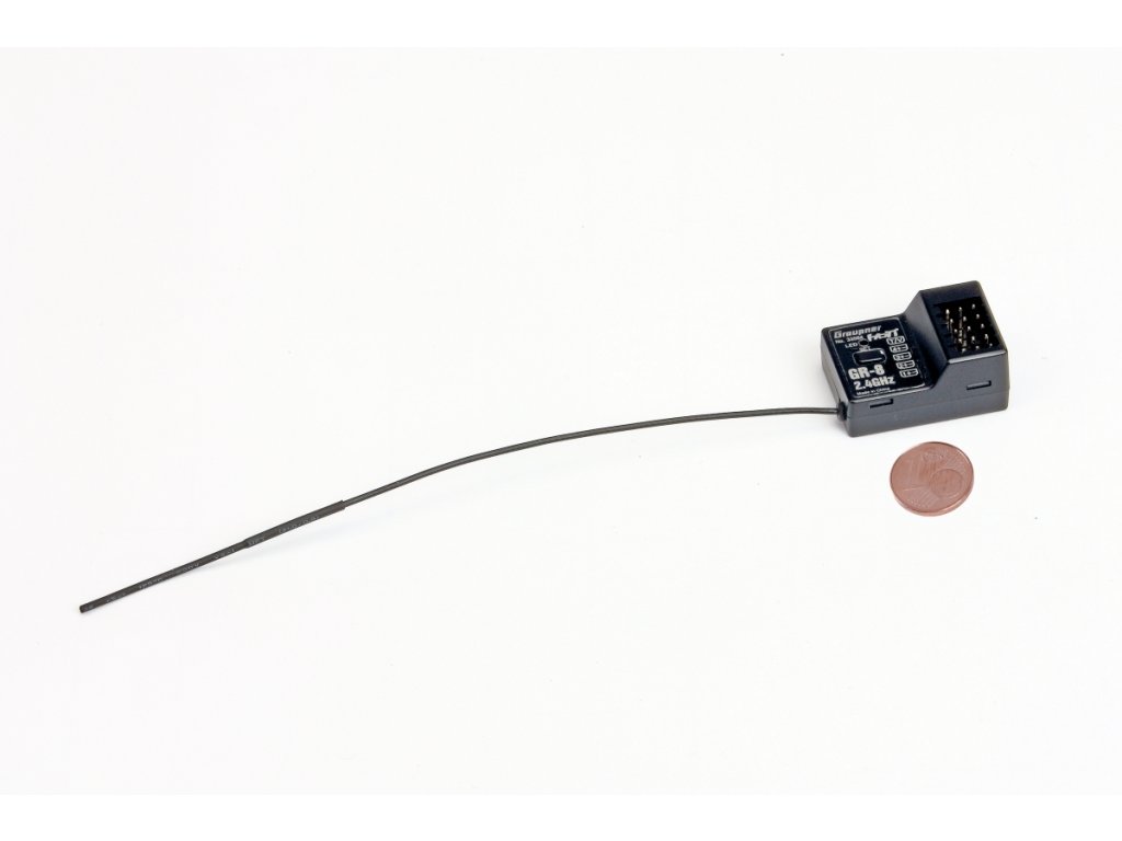 Size and weight have been reduced. The receiver input sensitivity and thus the range have been increased further. Horizontal Servo connections facilitate installation in tight spaces.