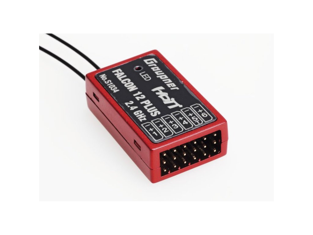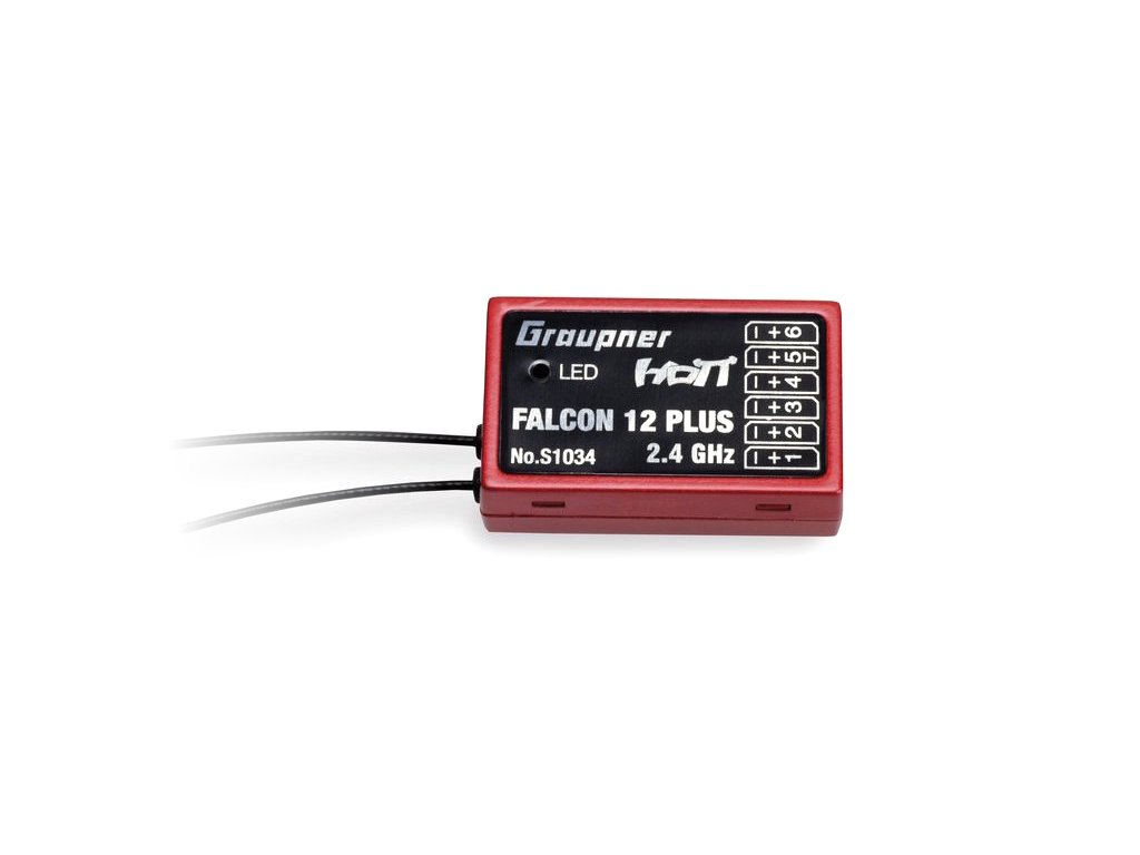 Falcon 12 plus Graupner představuje nový, vysoce výkonný 6-ti kanálový přijímač. Integrované jsou 3-osé gyroskopy a 3-osý akcelerometr a Vario.