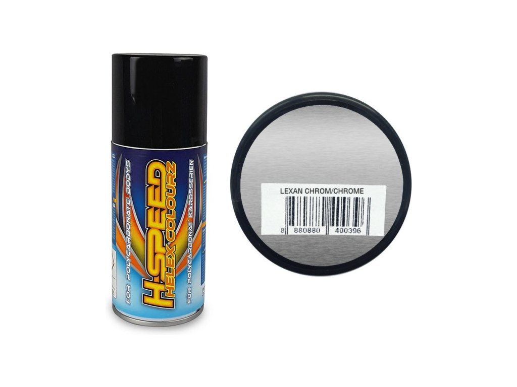 H-Speed chromově lesklá akrylová barva ve spreji je vhodná pro širokou škálu materiálů (plasty kromě nylonu, kovy, dřevo, sklo, keramika, papír, EPP, EPS). Barvy nezpůsobují korozi lexanu! Akrylové barvy rychle schnou, výborně kryjí a jsou odolné proti poškrábání.