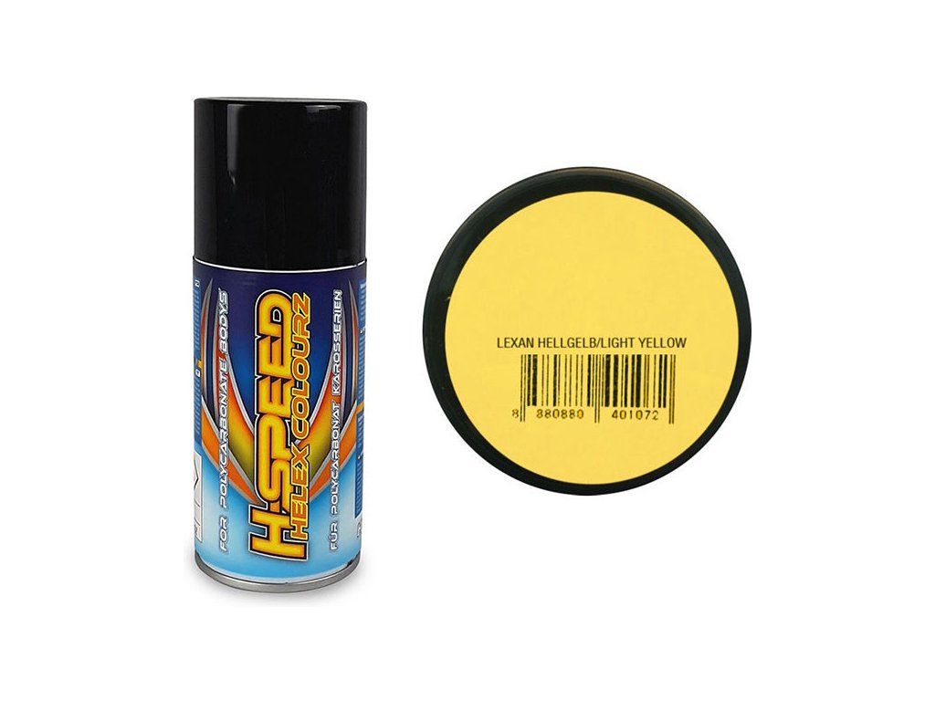 H-Speed žlutá světle akrylová barva ve spreji je vhodná pro širokou škálu materiálů včetně lexanových karosérií. Výhodou je krátká doba schnutí, výborné krytí a odolnost proti poškrábání. Obsah 150 ml.