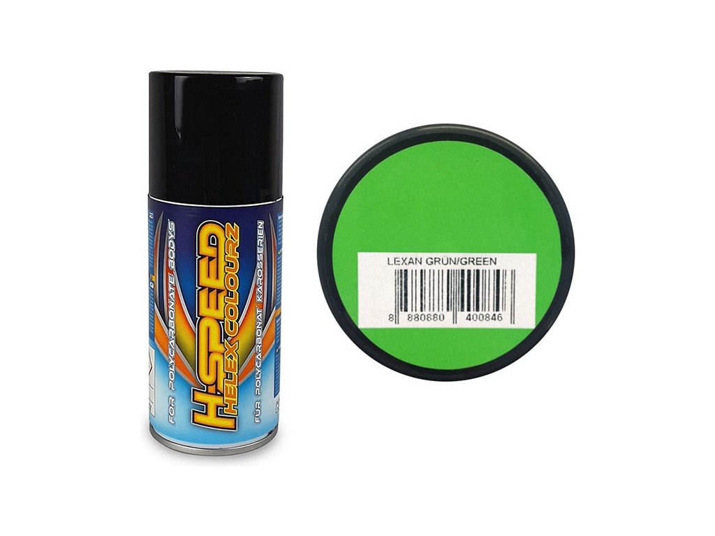 H-Speed zelená akrylová barva ve spreji je vhodná pro širokou škálu materiálů včetně lexanových karosérií. Výhodou je krátká doba schnutí, výborné krytí a odolnost proti poškrábání. Obsah 150 ml.