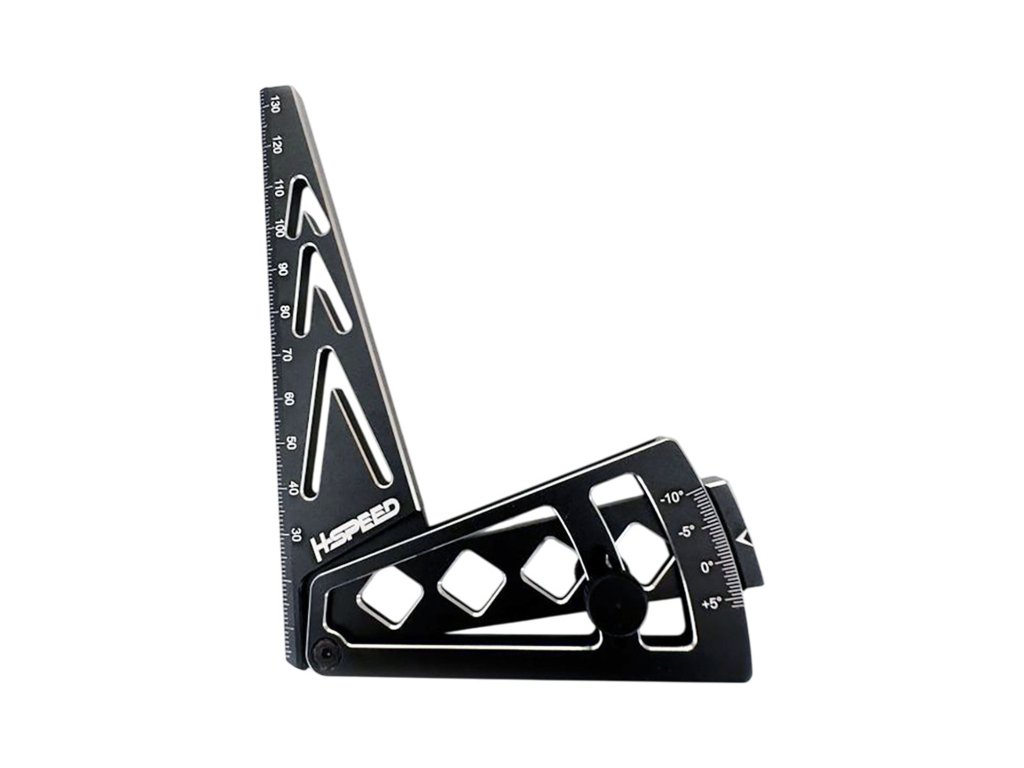 Měřidlo odklonu je přesný nástroj z hliníku určený k měření úhlu odklonu kol u RC modelů aut. Umožňuje nastavení a přesnou změnu odklonu kol pro vyladění jízdních vlastností. Rozsah stupnice -10° až +5°. Maximální výška kola 130mm.