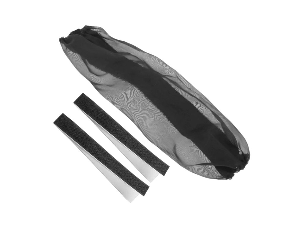 Nasaďte H-Speed protiprachový kryt seshora na podvozek a přehněte lemy na bok nebo pod šasí. Srovnejte a upravte polohu krytu a aplikujte přiloženou oboustrannou pásku suchého zipu přilepením na šasí. Pomocí zdrhovadla můžete protiprachový kryt odejmout.