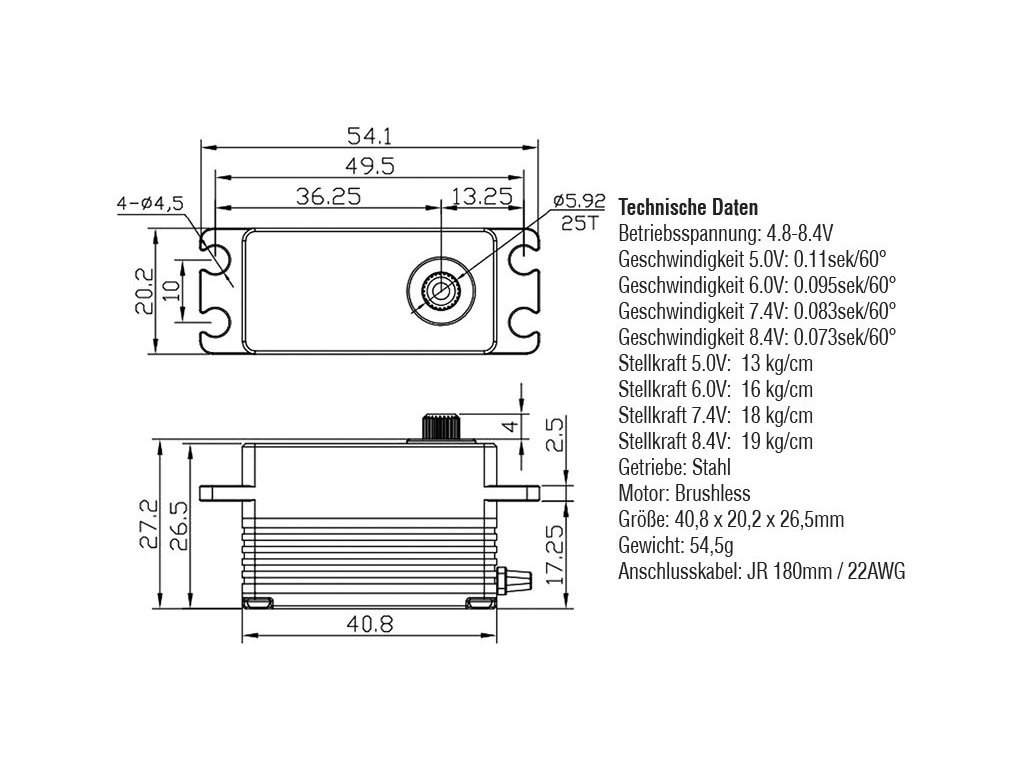 H-Speed servo HSX101 19kg.cm 0.073s/60° 25T