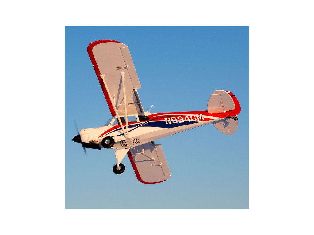 Nadstandardně zpracovaný celodřevěný model s mnoha maketovými detaily a funkčním odpružením podvozku. Model má výborné letové vlastnosti stejně jako předloha, maketové zpracování z něj činí velmi atraktivní stroj pro létání na akcích, vlekání větroňů a podobně. Ve stavebnici naleznete hotové potažené díly modelu s hotovým zbarvením fólií Hangar 9 UltraCote®, lehký a pevný drak je vyroben z kvalitní balzy a překližky. Dvoudílné křídlo se sklopnými vzpěrami křídla usnadňuje přepravu, odpružený podvozek s velkými 215mm balonovými koly s hliníkovými náboji a hliníkovou řiditelnou ostruhou, pohyb po vzletové dráze.