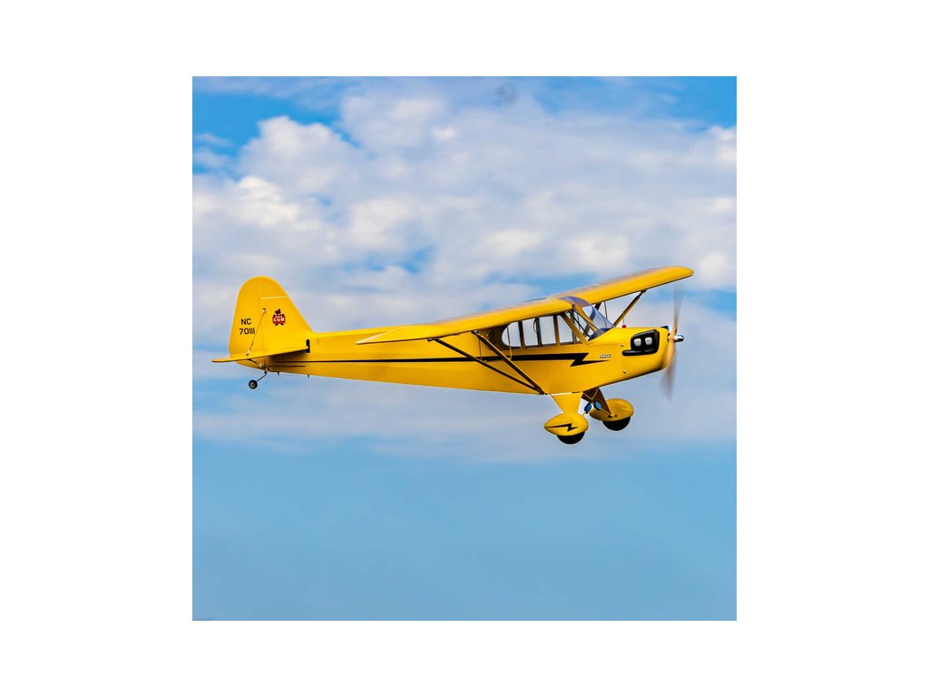 RC model populárního letadla J-3 Cub o rozpětí 2.1m v měřítku 1:5. Je navržen tak, aby poskytoval klasický vzhled originálu a pohodlný zážitek z létání s moderními funkcemi. Vyznačuje se výhodami lehké, tuhé a pevné dřevěné konstrukce s kombinací balsy a překližky (lite-ply), která je potažena originální fólií UltraCote®. Křídlo je dvoudílné, s uchycením na trubkovou výztuhu v trupu, pro snadnou přepravu a skladování. Na modelu je množství detailů v měřítku, včetně průhledných oken, vzpěr křídel a dalších. Podvozek obsahuje klasická kola a kryty. Volitelně lze instalovat kryty kol, či plováky (prodává se samostatně). Model je vhodný pro širokou škálu středně až zkušených pilotů!