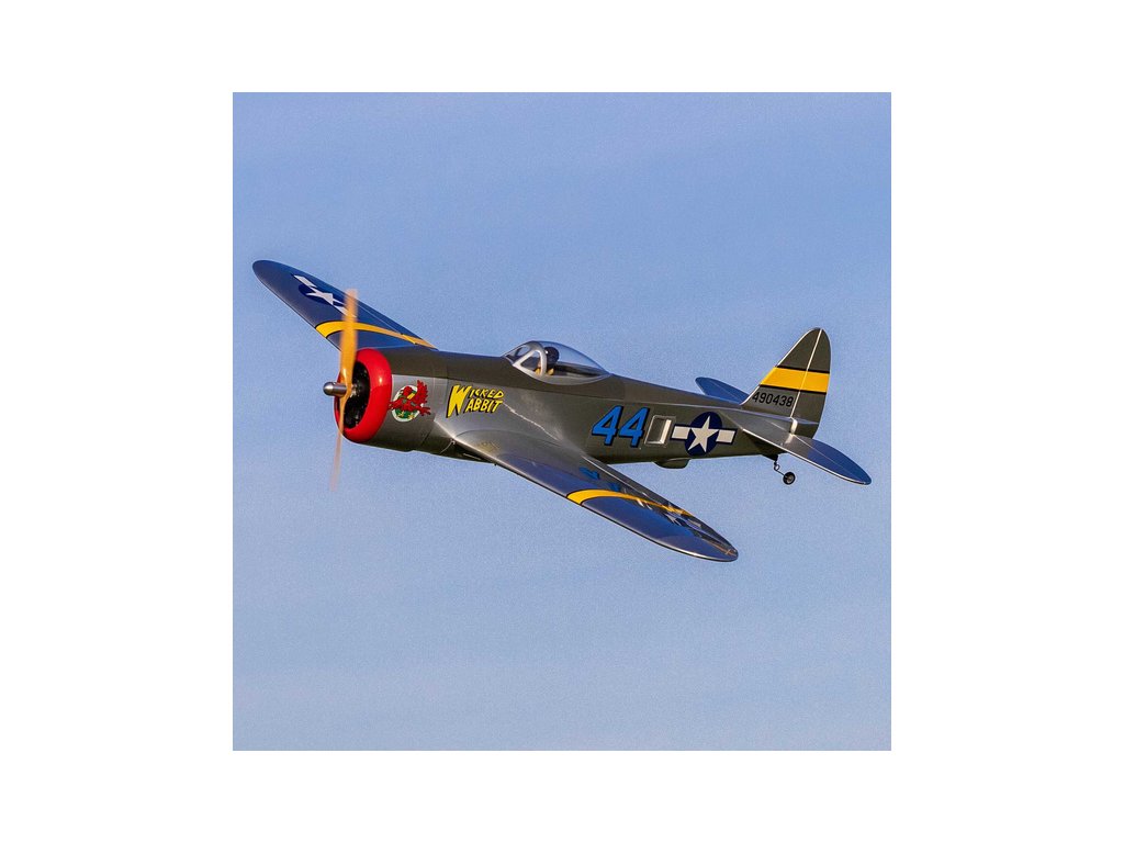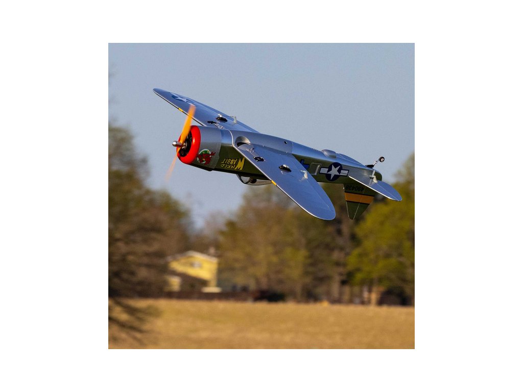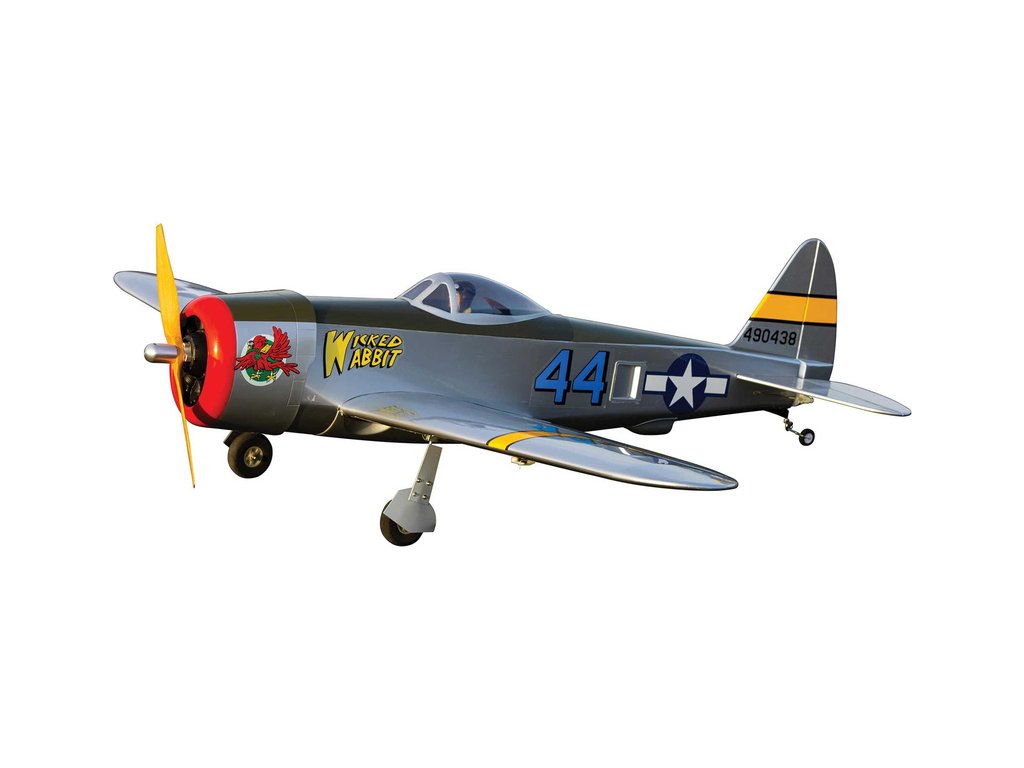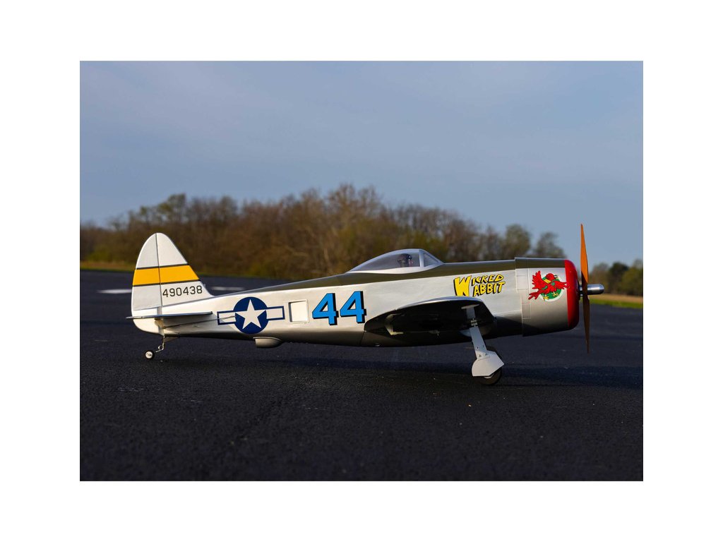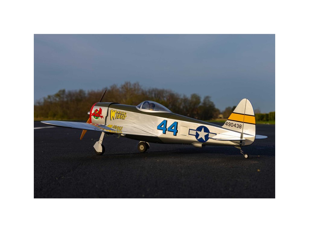 Hangar 9 nabízí celodřevěný, prakticky vybavený a téměř hotový RC model P-47 Thunderbolt, který je standardní stavebnicí, kterou je potřeba sestavit podle návodu. Výhodou je vybavenost modelu pohonem, serva a elektrickým zatahovacím podvozkem. Lehká celodřevěná konstrukce je převážně z překližky a balzy, díly jsou potaženy nažehlovací fólií UltraCote®. Při sestavení musí nalepit výškovka, nainstalovat táhla a zkompletovat křídlo, které se poutá pomocí dvou šroubů a kolíku k trupu. Přiložené dvě sady obtisků vám nabízí vyzdobit svůj model v kamufláži „Wicked Wabbit“ nebo „Hun Hunter“. Kryt motoru je laminátový nabarvený, snadno odnímatelný a usnadní přístup k elektronice a bateriím. V balení je obsažena dřevěná vrtule 14x12 pro napájení 4 čl. Lipo baterií.