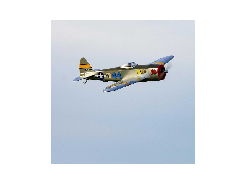 RC model warbirdu od Hangar 9, letadlo P-47 Thunderbolt o rozpětí 1.5 m ve verzi PNP s nainstalovaným motorem, regulátorem, servy, vrtulí a zatahovacím podvozkem. Celodřevěná konstrukce, potah Ultracote, stačí nainstalovat pouze váš přijímač a baterií!
