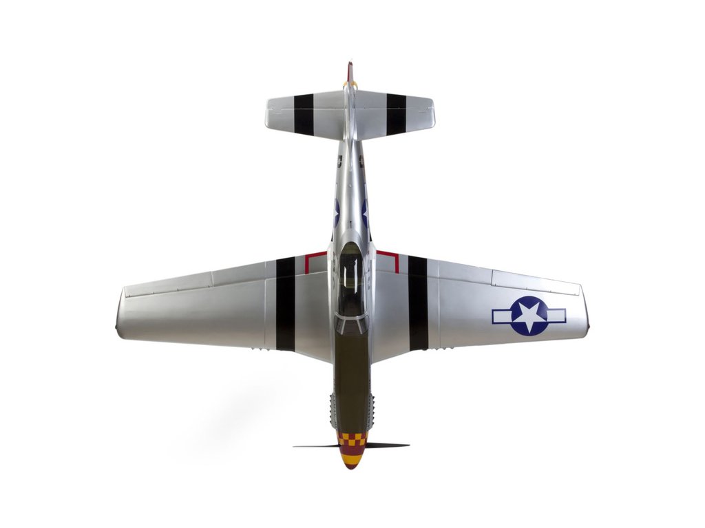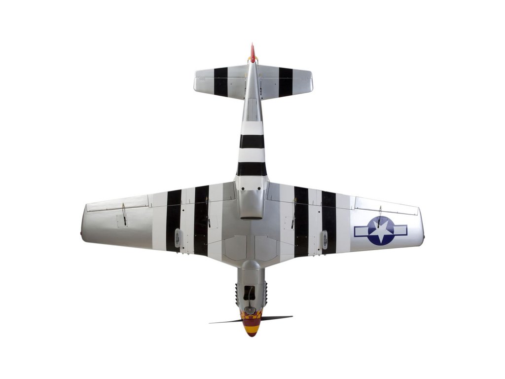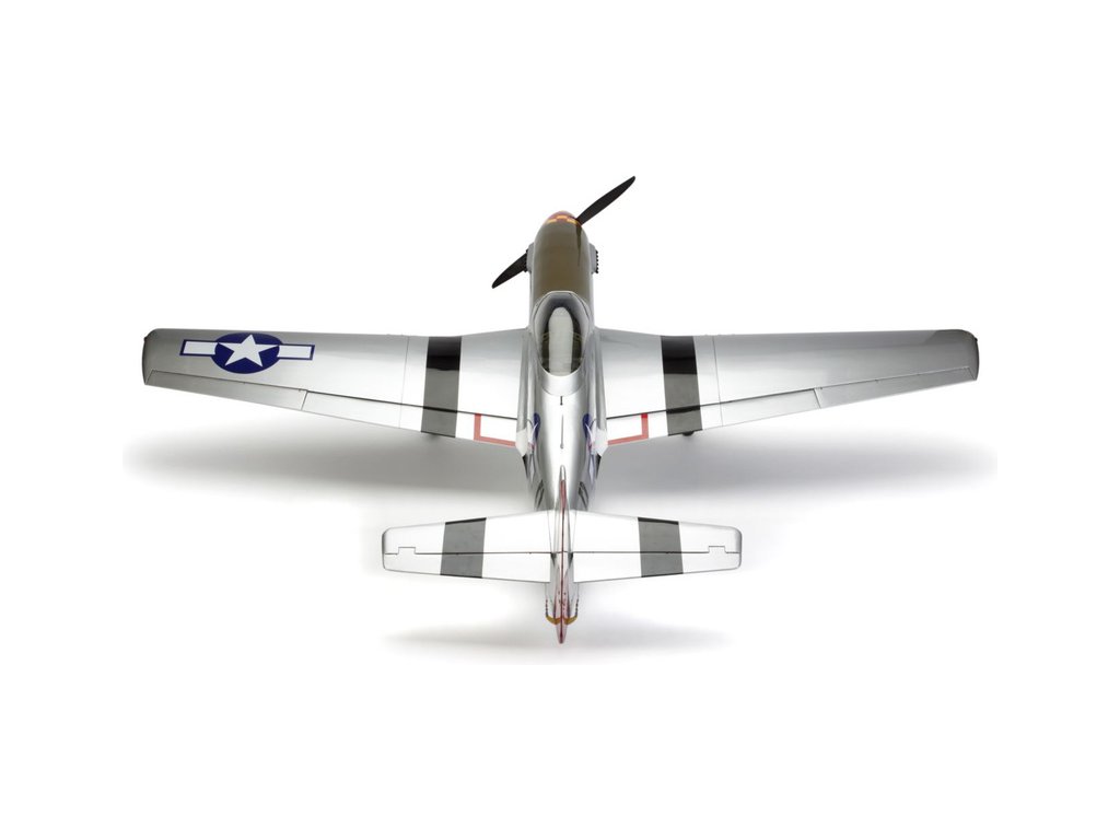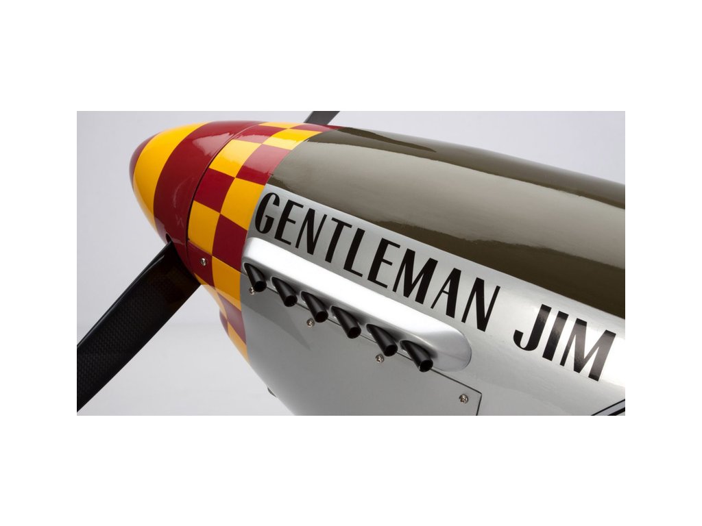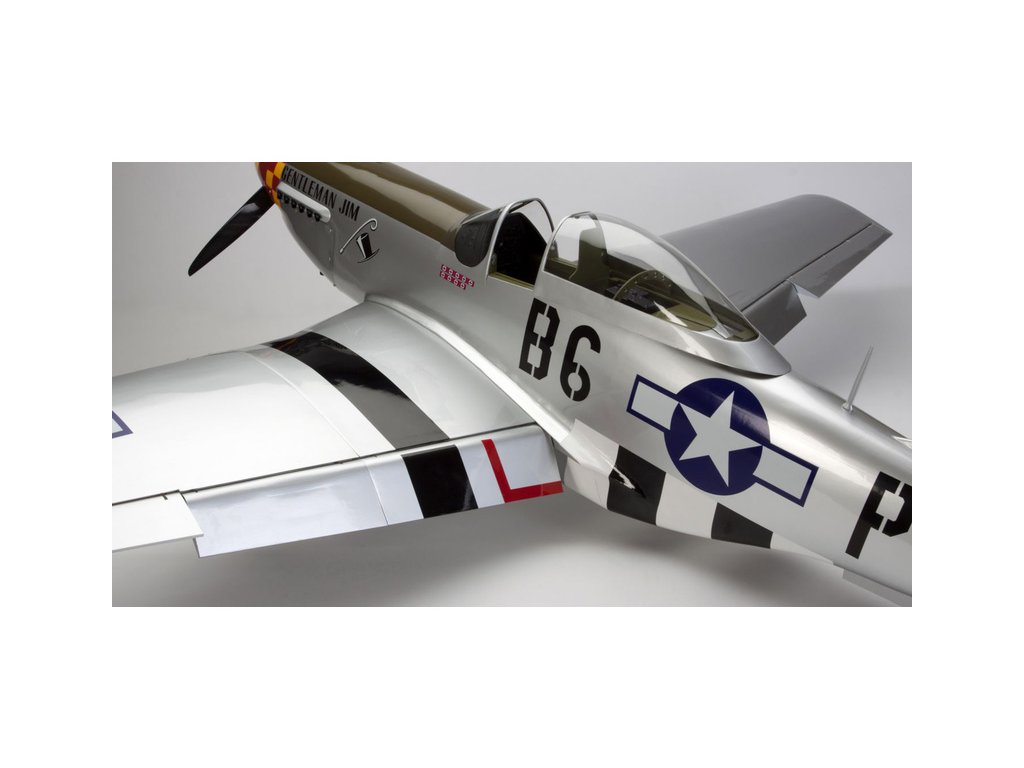 P-51D Mustang je zpracován s řadou detailů, včetně odnímací antény na trupu, maket zbraní a krytů podvozku. Podvozkové kryty se v případě použití zatahovacího podvozku kompletně zavírají, stejně jako v případě použití zatahovací ostruhy. Originální potahová fólie Oracover má realistický vzhled skutečného stroje. Pro přesné určení kamufláže se v setru dodávají dvě sady obtisků a to "Glamorous Glen III", se kterým létal kapitán Chuck Yeager a "Gentleman Jim", kapitána Jima Browninga.