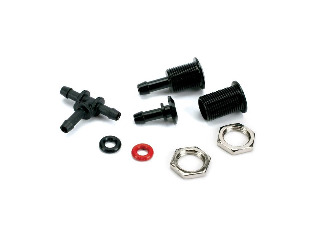 Hangar 9 palivový plnič s T spojkou a přetlakovou fitinkou. Obsahuje 2x O-kroužek pro použití s benzínovými nebo nitro motory, hliníkové palivové komponenty a plastovou T spojku. Průměr otvoru 3/8 (9.5 mm).