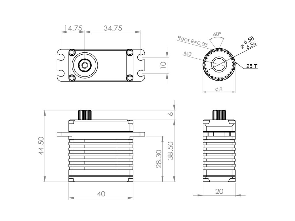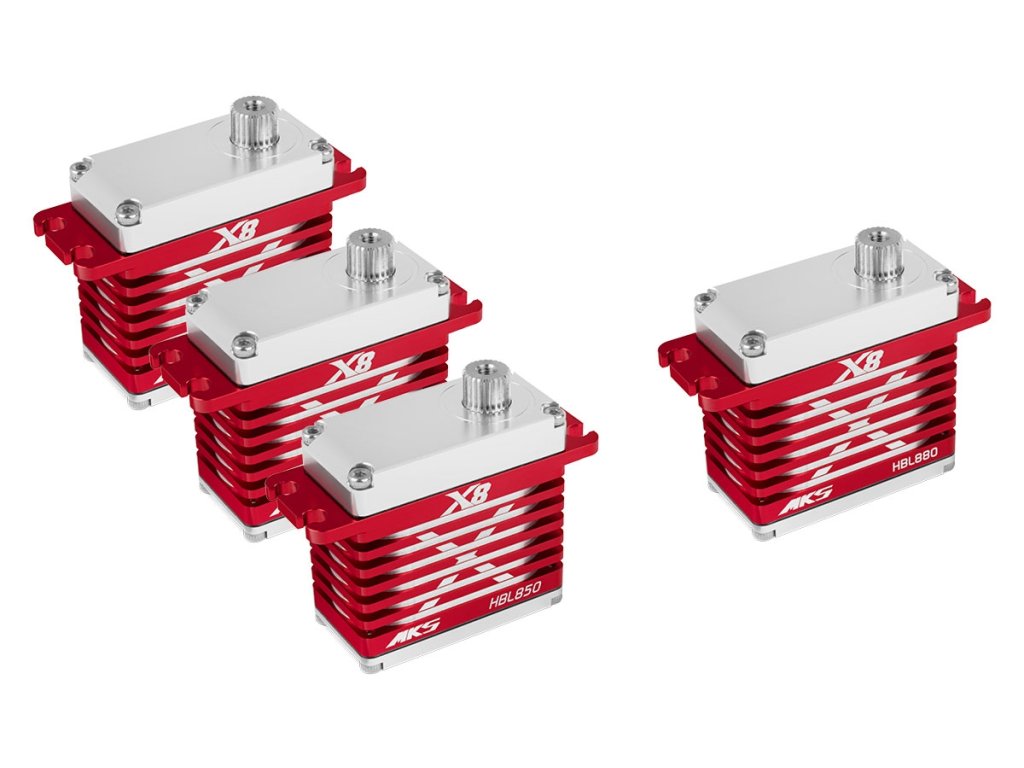 Combo set standardních serv pro vrtulníky velikosti 700-800 obsahující 3x HBL850 standardní střídavá serva pro cykliku a 1x standardní střídavé servo HBL880 (úzkopásmové 760µs) pro ocasní rotor. Kompatibilní s většinou 760µs gyroskopů a flybarless jednotek.