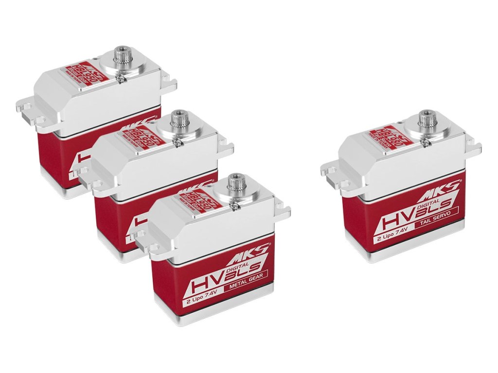 Combo set standardních serv pro vrtulníky velikosti 600-800 obsahující 3x HBL950 standardní střídavá serva pro cykliku a 1x standardní střídavé servo HBL980 (úzkopásmové 760µs) pro ocasní rotor. Kompatibilní s většinou 760µs gyroskopů a flybarless jednotek.