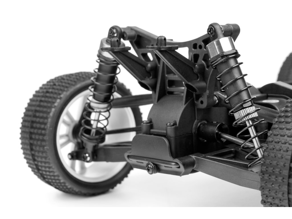 Podvozek má nezávislé zavěšení kol a horní ramena i spojovačky řízení jsou vybaveny spojovačkami s šestihranem a pravo/levým závitem pro snadné nastavení a seřízení geometrie podvozku. Jistotu a stabilitu při jízdě modelu dodávají olejové tlumiče.
