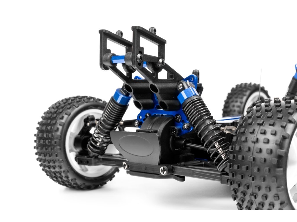 Podvozek má nezávislé zavěšení kol a horní ramena i spojovačky řízení jsou vybaveny spojovačkami s šestihranem a pravo/levým závitem pro snadné nastavení a seřízení geometrie podvozku. Jistotu a stabilitu při jízdě modelu dodávají olejové tlumiče.