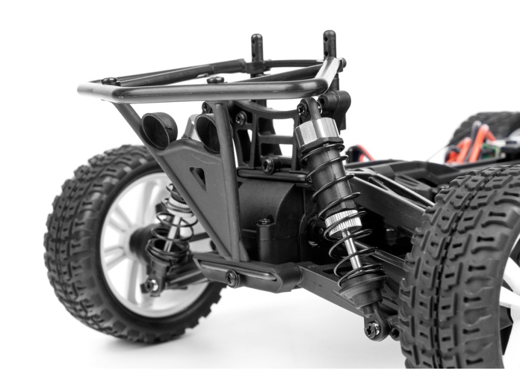 Podvozek má nezávislé zavěšení kol a horní ramena i spojovačky řízení jsou vybaveny spojovačkami s šestihranem a pravo/levým závitem pro snadné nastavení a seřízení geometrie podvozku. Jistotu a stabilitu při jízdě modelu dodávají olejové tlumiče.
