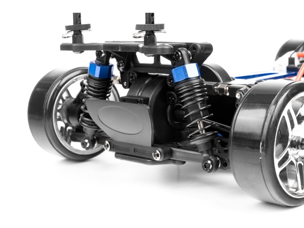 Podvozek má nezávislé zavěšení kol a horní ramena i spojovačky řízení jsou vybaveny spojovačkami s šestihranem a pravo/levým závitem pro snadné nastavení a seřízení geometrie podvozku. Jistotu a stabilitu při jízdě modelu dodávají olejové tlumiče.