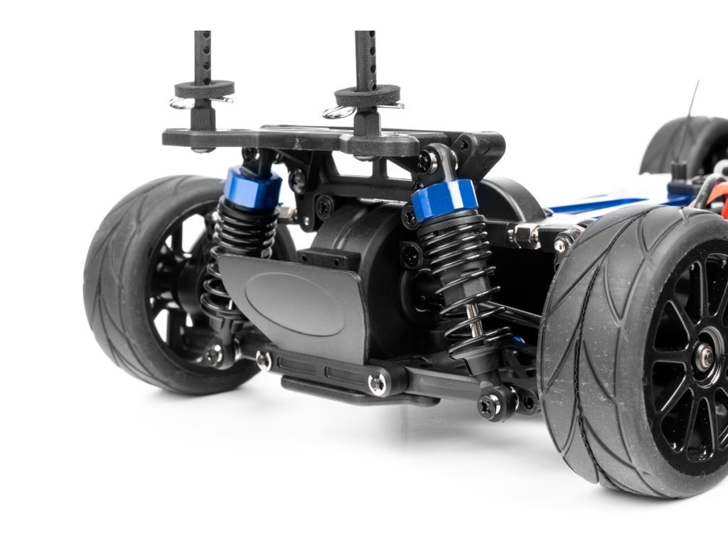 Podvozek má nezávislé zavěšení kol a horní ramena i spojovačky řízení jsou vybaveny spojovačkami s šestihranem a pravo/levým závitem pro snadné nastavení a seřízení geometrie podvozku. Jistotu a stabilitu při jízdě modelu dodávají olejové tlumiče.