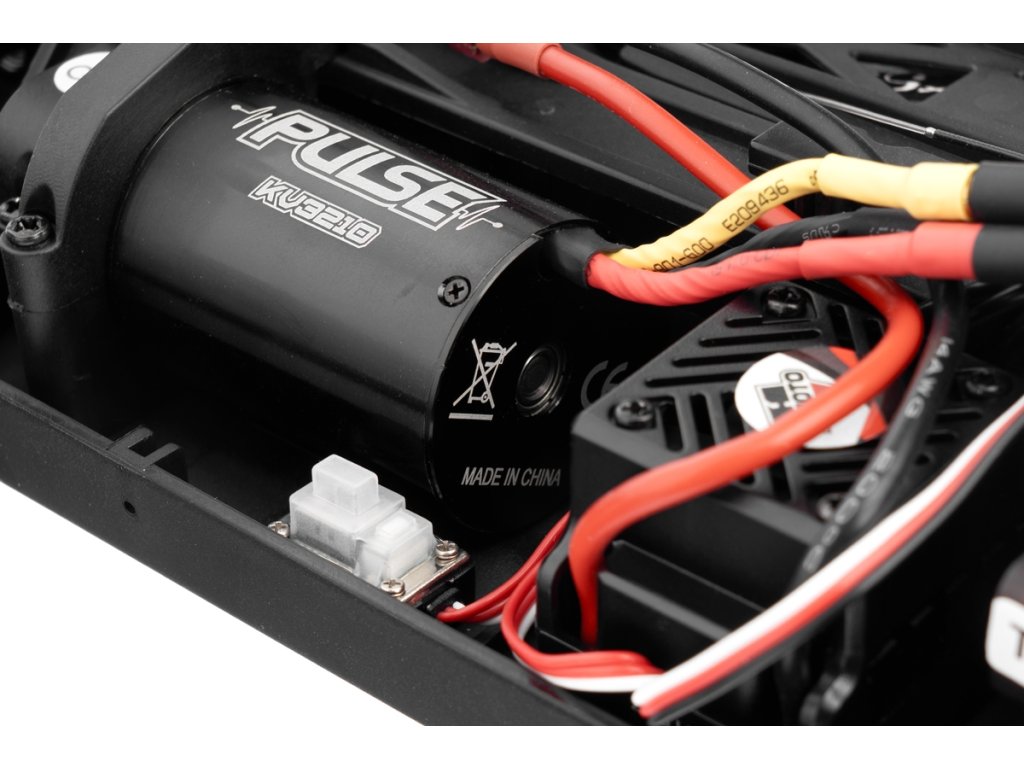 Pohon obstarává střídavý motor 3210KV řízený 60A obousměrným regulátorem. K řízení je použita čtyřkanálová proporcionální volantová RC souprava pracující v pásmu 2,4 GHz, s důležitým nastavením, jako trimy, reverzy a výchylky kanálů.