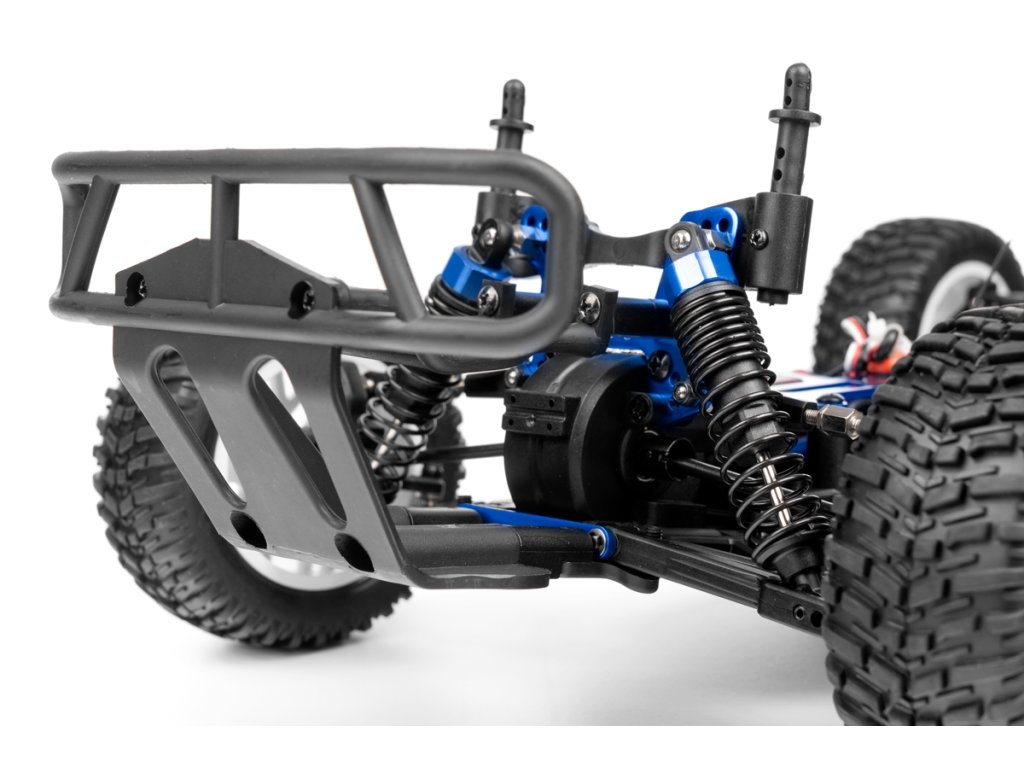 Podvozek má nezávislé zavěšení kol a horní ramena i spojovačky řízení jsou vybaveny spojovačkami s šestihranem a pravo/levým závitem pro snadné nastavení a seřízení geometrie podvozku. Jistotu a stabilitu při jízdě modelu dodávají olejové tlumiče.