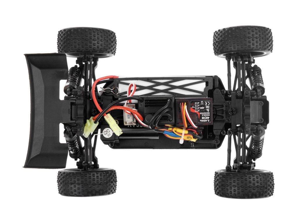 Konstrukce je převážně plastová, k pohonu je použit střídavý motor velikosti "380", který přes stálý převod pohání všechna čtyři kola (4WD). Palubní část RC soupravy sestává z 2,4Ghz přijímače, obousměrného regulátoru otáček a serva řízení. Podvozek konstrukčně vychází z větších modelů, takže se může pochlubit nezávislým zavěšením kol, olejovými tlumiči apod. K ovládání je použita RC souprava pracující v pásmu 2,4Ghz.