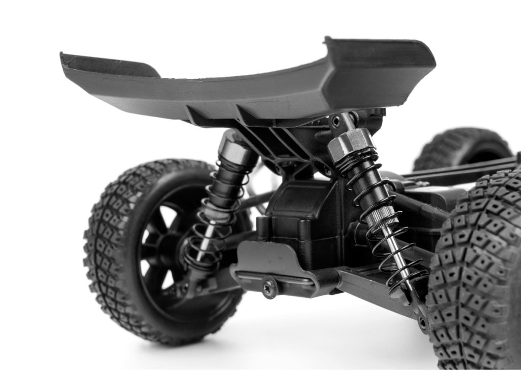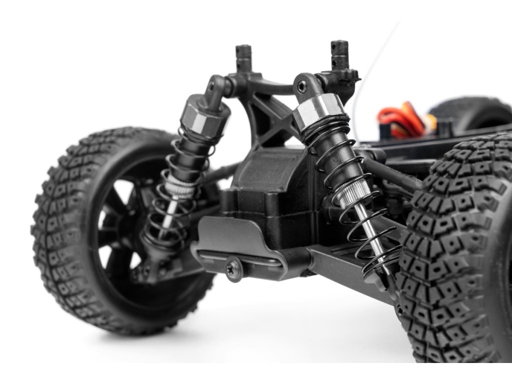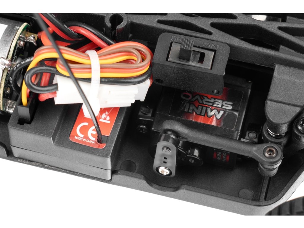 Konstrukce je převážně plastová, k pohonu je použit stejnosměrný motor velikosti "380", který přes stálý převod pohání všechna čtyři kola (4WD). Palubní část RC soupravy sestává z jednotky 2v1 (která v sobě ukrývá přijímač a obousměrný regulátor) a serva řízení. Podvozek konstrukčně vychází z větších modelů, takže se může pochlubit nezávislým zavěšením kol, olejovými tlumiči apod. K ovládání je použita RC souprava pracující v pásmu 2,4Ghz.