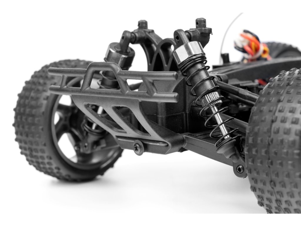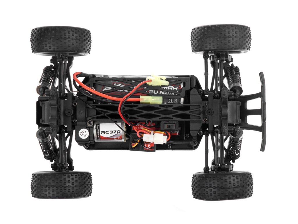 Konstrukce je převážně plastová, k pohonu je použit stejnosměrný motor velikosti "380", který přes stálý převod pohání všechna čtyři kola (4WD). Palubní část RC soupravy sestává z jednotky 2v1 (která v sobě ukrývá přijímač a obousměrný regulátor) a serva řízení. Podvozek konstrukčně vychází z větších modelů, takže se může pochlubit nezávislým zavěšením kol, olejovými tlumiči apod. K ovládání je použita RC souprava pracující v pásmu 2,4Ghz.
