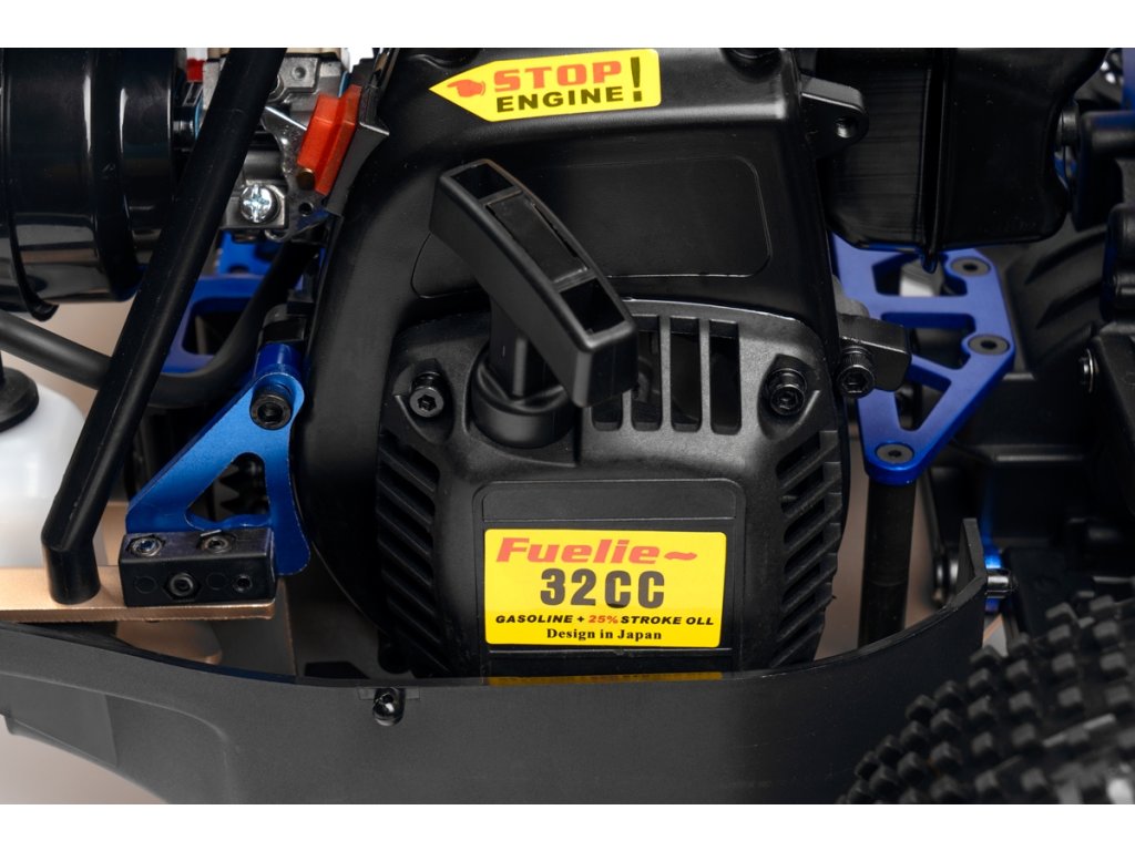 Provedení podvozku je velice podobné modelům menších měřítek, jen konstrukce a použité materiály jsou podřízeny tomu, aby skoro 13 kg model odolal i v těch nejnáročnějších podmínkách. Motor o obsahu 32ccm pohání přes odstředivou spojku pomocí rozvodovky a ocelového stálého převodu všechna čtyři kola, což je v této kategorii zcela ojedinělé.