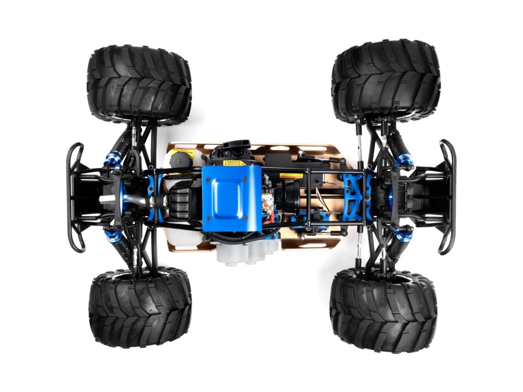 Model obřího Monster trucku s náhonem na všechna čtyři kola je poháněn benzínovým motorem o obsahu 32ccm s tahovým startérem.
