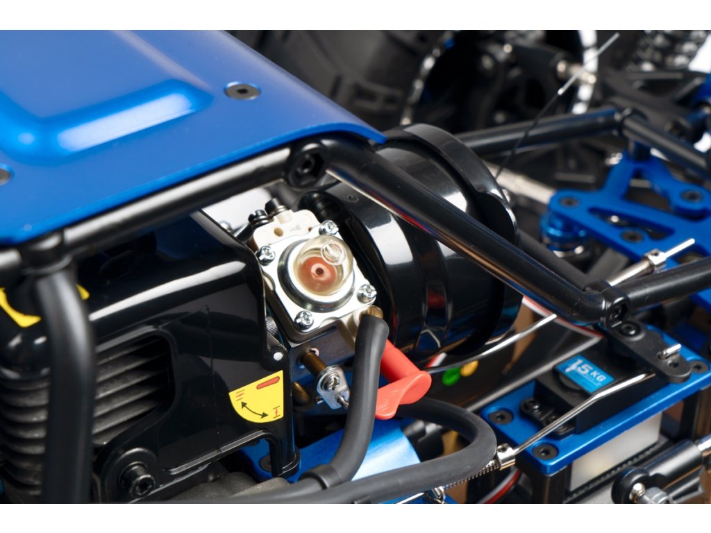 Provedení podvozku je velice podobné modelům menších měřítek, jen konstrukce a použité materiály jsou podřízeny tomu, aby skoro 17 kg model odolal i v těch nejnáročnějších podmínkách. Motor o obsahu 32ccm pohání přes odstředivou spojku pomocí rozvodovky a ocelového stálého převodu všechna čtyři kola, což je v této kategorii zcela ojedinělé.