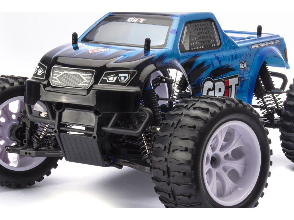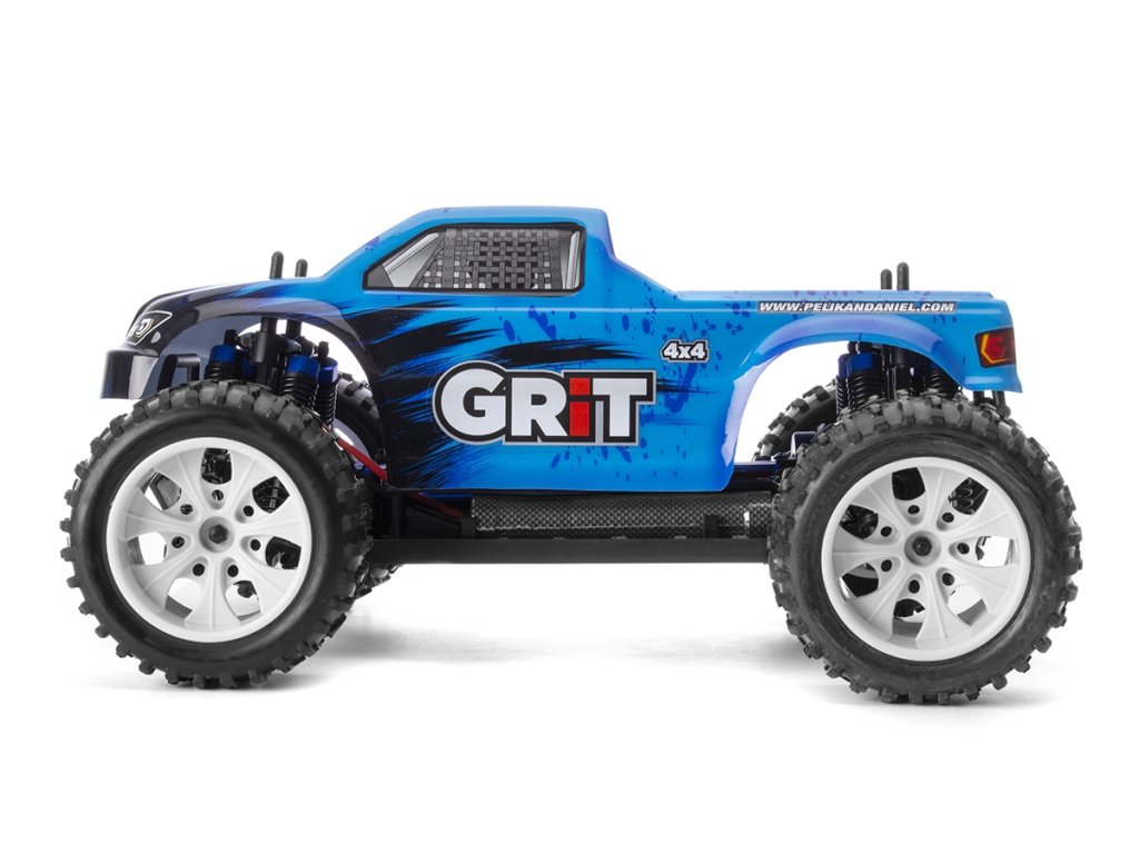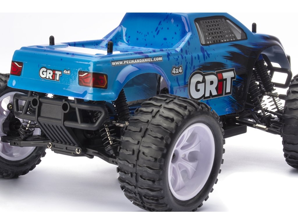 Dalším z modelů určených převážně pro začátečníky a rekreační poježdění i v náročnějším terénu je EMXT GRIT. Jedná se o model monster trucku v měřítku 1:10, poháněný stejnosměrným elktromotorem velikosti "540" a s náhonem 4WD. Model je dnes již klasické konstrukce. Hlavním materiálem je plast plněný skelnými vlákny. Držáky (parohy) tlumičů a horní deska, která tvoří výztuhu podvozku jsou z fialově eloxovaného duralu. Stejně povrchově upraven je i mohutný chladič motoru a víka olejových tlumičů. Přední i zadní náprava jsou vybaveny diferenciály s planetovým převodem. Náboje kol i diferenciály jsou vybaveny kuličkovými ložisky. Horní ramena i spojovačky řízení jsou vybaveny svorníky s šestihranem a pravo/levým závitem pro snadné nastavení a seřízení geometrie podvozku. Pohon obstarává stejnosměrný motor "540" řízený obousměrným regulátore. K řízení je použita tříkanálová volantová RC souprava pracující v pásmu 2,4GHz.