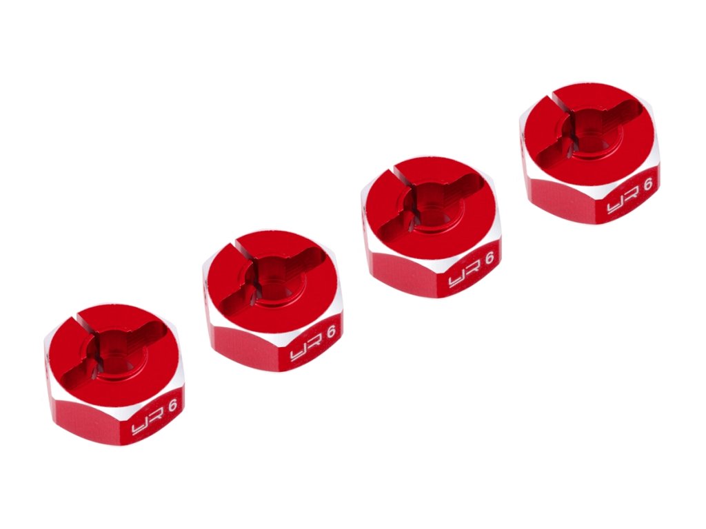 Hliníkové HEX unašeče kola 12x6mm, 4ks, červený
