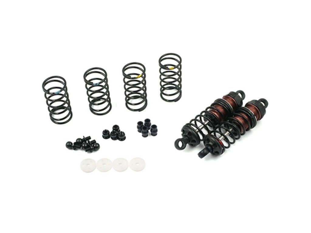 Big Bore Go! sada velkoobjemových tlumičů - přidejte olej a můžete vyrazit! Obsahuje dva různé typy kulových čepů pro různé typy vozů. Součástí jsou různé pružiny, abyste si mohli vyladit tvrdost odpružení a nemuseli po zakoupení této sady tlumičů hledat jiné pružiny. Pokud to s laděním myslíte opravdu vážně, jsou součástí balení také pístky s různým vrtáním, abyste mohli nastavit, jak tlumič reaguje na tlumicí olej.