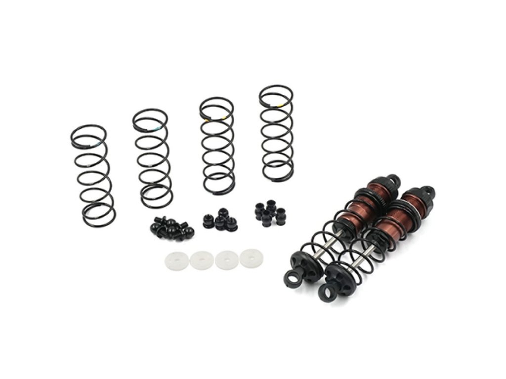 Big Bore Go! sada velkoobjemových tlumičů - přidejte olej a můžete vyrazit! Obsahuje dva různé typy kulových čepů pro různé typy vozů. Součástí jsou různé pružiny, abyste si mohli vyladit tvrdost odpružení a nemuseli po zakoupení této sady tlumičů hledat jiné pružiny. Pokud to s laděním myslíte opravdu vážně, jsou součástí balení také pístky s různým vrtáním, abyste mohli nastavit, jak tlumič reaguje na tlumicí olej.