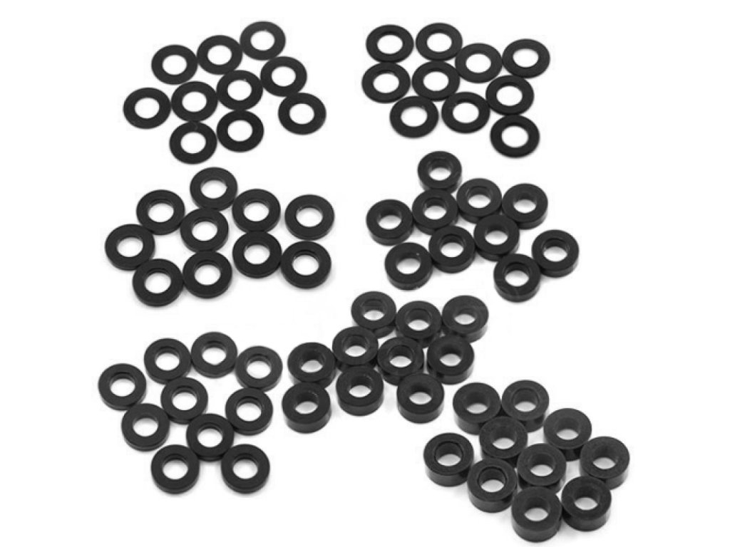 Hliníkové podložky M3 Sada 0.25/0.5/1/1.5/2/2.5/3mm (od každého 10 kusů) - černé