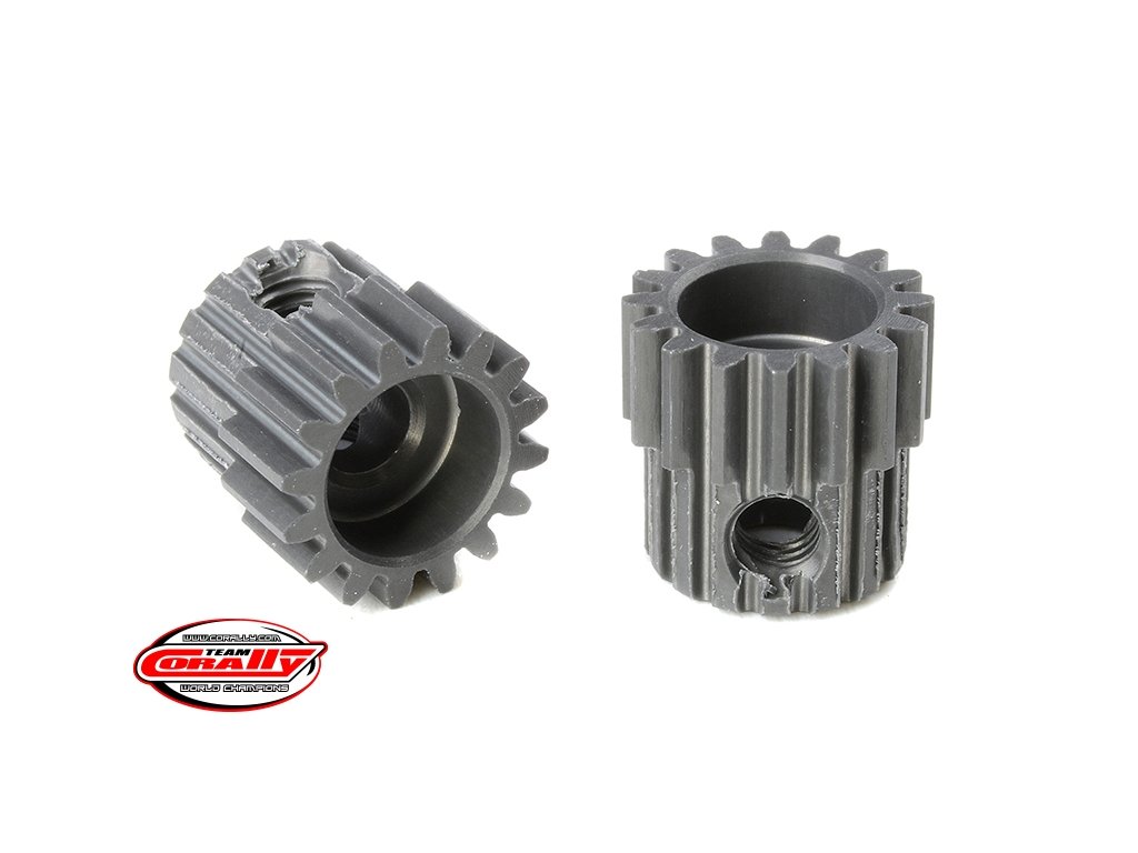 Krátké provedení, materiál tvrzený hliník 7075 T6, 16 zubů, modul ozubení 48DP. Pro hřídel motoru o průměru 3.17 mm (1/8 in). Pastorky TEAM CORALLY jsou vyráběny frézováním a následně tvrzeny, čímž je zajištěna vysoká přesnost ozubení. Všechny pastorky TEAM CORALLY jsou vyrobeny v EU.Doplňkové parametry