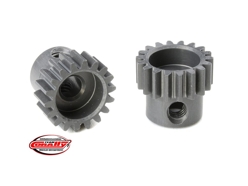 Krátké provedení, materiál tvrzený hliník 7075 T6, 18 zubů, modul ozubení 48DP. Pro hřídel motoru o průměru 3.17 mm (1/8 in). Pastorky TEAM CORALLY jsou vyráběny frézováním a následně tvrzeny, čímž je zajištěna vysoká přesnost ozubení. Všechny pastorky TEAM CORALLY jsou vyrobeny v EU.Doplňkové parametry
