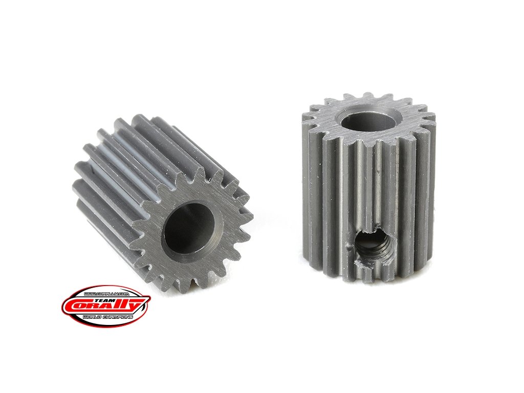 Krátké provedení, materiál tvrzený hliník 7075 T6, 18 zubů, modul ozubení 64DP. Pro hřídel motoru o průměru 3.17 mm (1/8 in). Pastorky TEAM CORALLY jsou vyráběny frézováním a následně tvrzeny, čímž je zajištěna vysoká přesnost ozubení. Všechny pastorky TEAM CORALLY jsou vyrobeny v EU.Doplňkové parametry