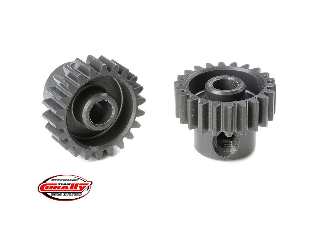 Krátké provedení, materiál tvrzený hliník 7075 T6, 21 zubů, modul ozubení 48DP. Pro hřídel motoru o průměru 3.17 mm (1/8 in). Pastorky TEAM CORALLY jsou vyráběny frézováním a následně tvrzeny, čímž je zajištěna vysoká přesnost ozubení. Všechny pastorky TEAM CORALLY jsou vyrobeny v EU.Doplňkové parametry