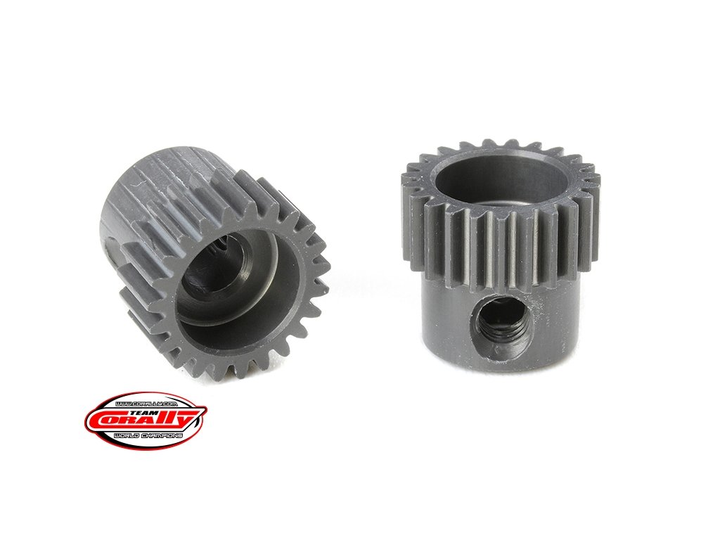 Krátké provedení, materiál tvrzený hliník 7075 T6, 23 zubů, modul ozubení 64DP. Pro hřídel motoru o průměru 3.17 mm (1/8 in). Pastorky TEAM CORALLY jsou vyráběny frézováním a následně tvrzeny, čímž je zajištěna vysoká přesnost ozubení. Všechny pastorky TEAM CORALLY jsou vyrobeny v EU.Doplňkové parametry