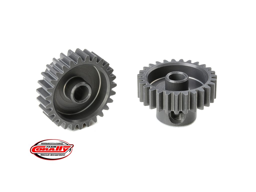 Krátké provedení, materiál tvrzený hliník 7075 T6, 27 zubů, modul ozubení 48DP. Pro hřídel motoru o průměru 3.17 mm (1/8 in). Pastorky TEAM CORALLY jsou vyráběny frézováním a následně tvrzeny, čímž je zajištěna vysoká přesnost ozubení. Všechny pastorky TEAM CORALLY jsou vyrobeny v EU.Doplňkové parametry