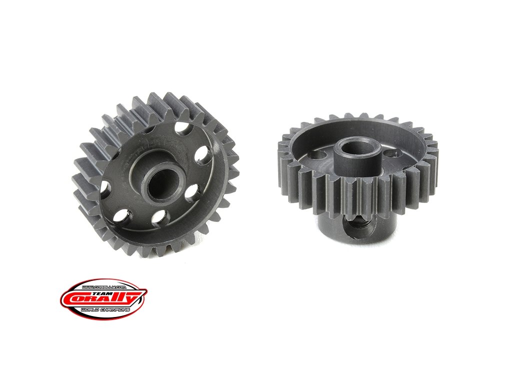 Krátké provedení, materiál tvrzený hliník 7075 T6, 28 zubů, modul ozubení 48DP. Pro hřídel motoru o průměru 3.17 mm (1/8 in). Pastorky TEAM CORALLY jsou vyráběny frézováním a následně tvrzeny, čímž je zajištěna vysoká přesnost ozubení. Všechny pastorky TEAM CORALLY jsou vyrobeny v EU.Doplňkové parametry