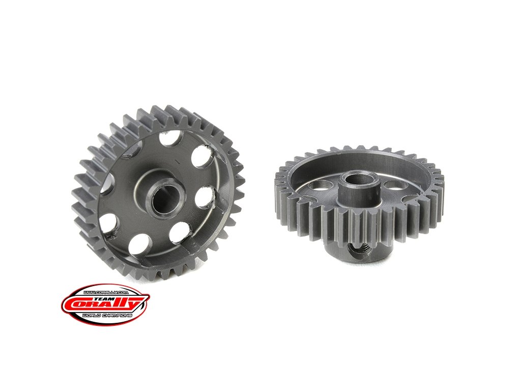 Krátké provedení, materiál tvrzený hliník 7075 T6, 34 zubů, modul ozubení 48DP. Pro hřídel motoru o průměru 3.17 mm (1/8 in). Pastorky TEAM CORALLY jsou vyráběny frézováním a následně tvrzeny, čímž je zajištěna vysoká přesnost ozubení. Všechny pastorky TEAM CORALLY jsou vyrobeny v EU.Doplňkové parametry