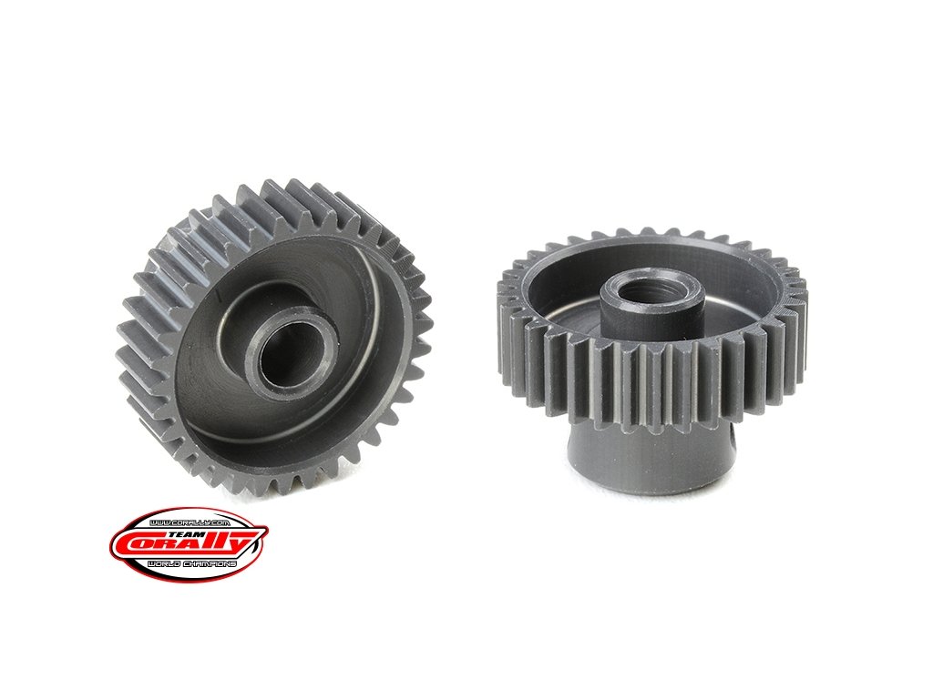 Krátké provedení, materiál tvrzený hliník 7075 T6, 34 zubů, modul ozubení 64DP. Pro hřídel motoru o průměru 3.17 mm (1/8 in). Pastorky TEAM CORALLY jsou vyráběny frézováním a následně tvrzeny, čímž je zajištěna vysoká přesnost ozubení. Všechny pastorky TEAM CORALLY jsou vyrobeny v EU.Doplňkové parametry