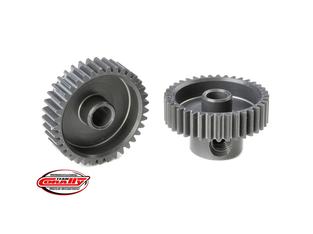 Krátké provedení, materiál tvrzený hliník 7075 T6, 37 zubů, modul ozubení 64DP. Pro hřídel motoru o průměru 3.17 mm (1/8 in). Pastorky TEAM CORALLY jsou vyráběny frézováním a následně tvrzeny, čímž je zajištěna vysoká přesnost ozubení. Všechny pastorky TEAM CORALLY jsou vyrobeny v EU.Doplňkové parametry
