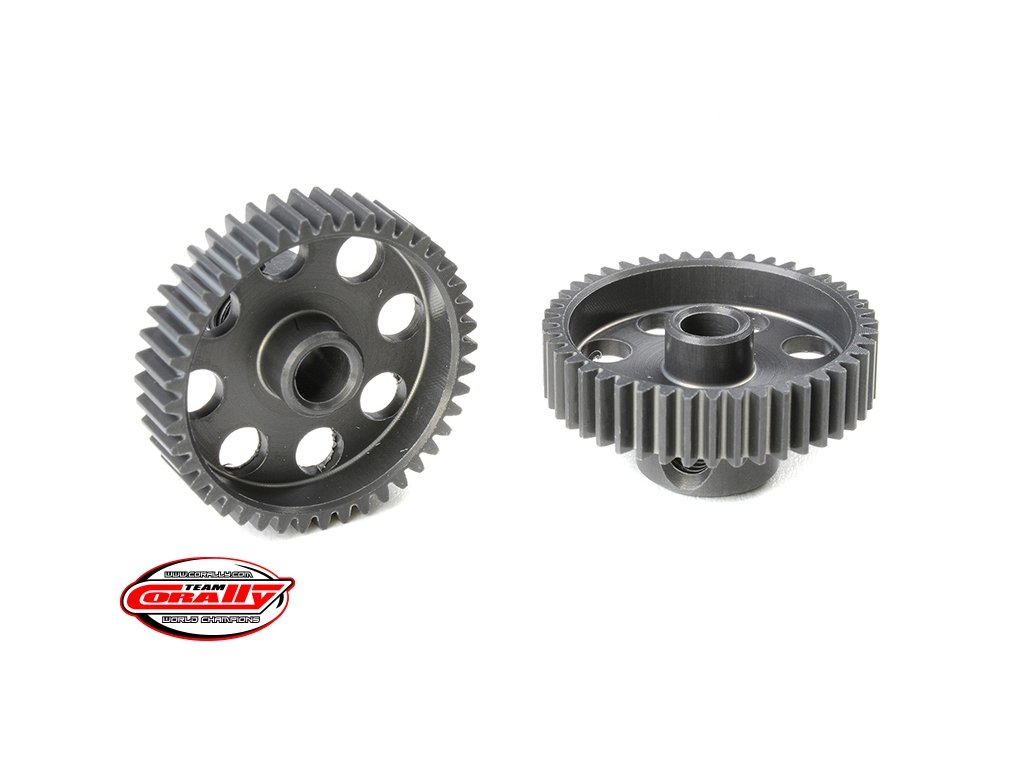 Krátké provedení, materiál tvrzený hliník 7075 T6, 44 zubů, modul ozubení 64DP. Pro hřídel motoru o průměru 3.17 mm (1/8 in). Pastorky TEAM CORALLY jsou vyráběny frézováním a následně tvrzeny, čímž je zajištěna vysoká přesnost ozubení. Všechny pastorky TEAM CORALLY jsou vyrobeny v EU.Doplňkové parametry