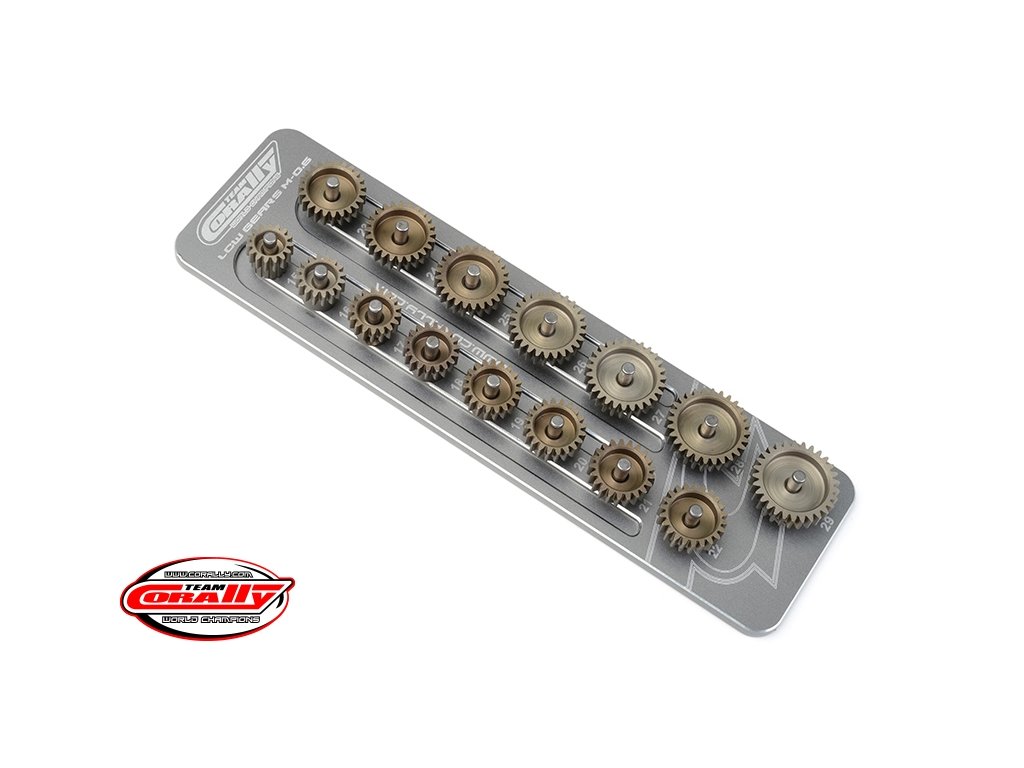 Hliníkový držák pastorků Modulu M0.6 od 15 až 29 zubů. Eloxováno v barvě titanu/šedá