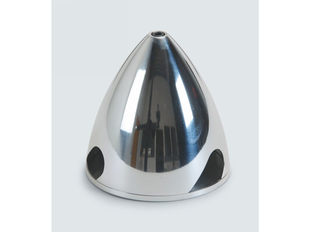 Přesný hliníkový kužel pro spalovací motory pro třílisté vrtule. Základní deska je umístěna mezi unašečem vrtule a vrtulí. Vybrání v základně kuželu přesně vystředí kužel na základní desce. Centrální upevnění šroubem.