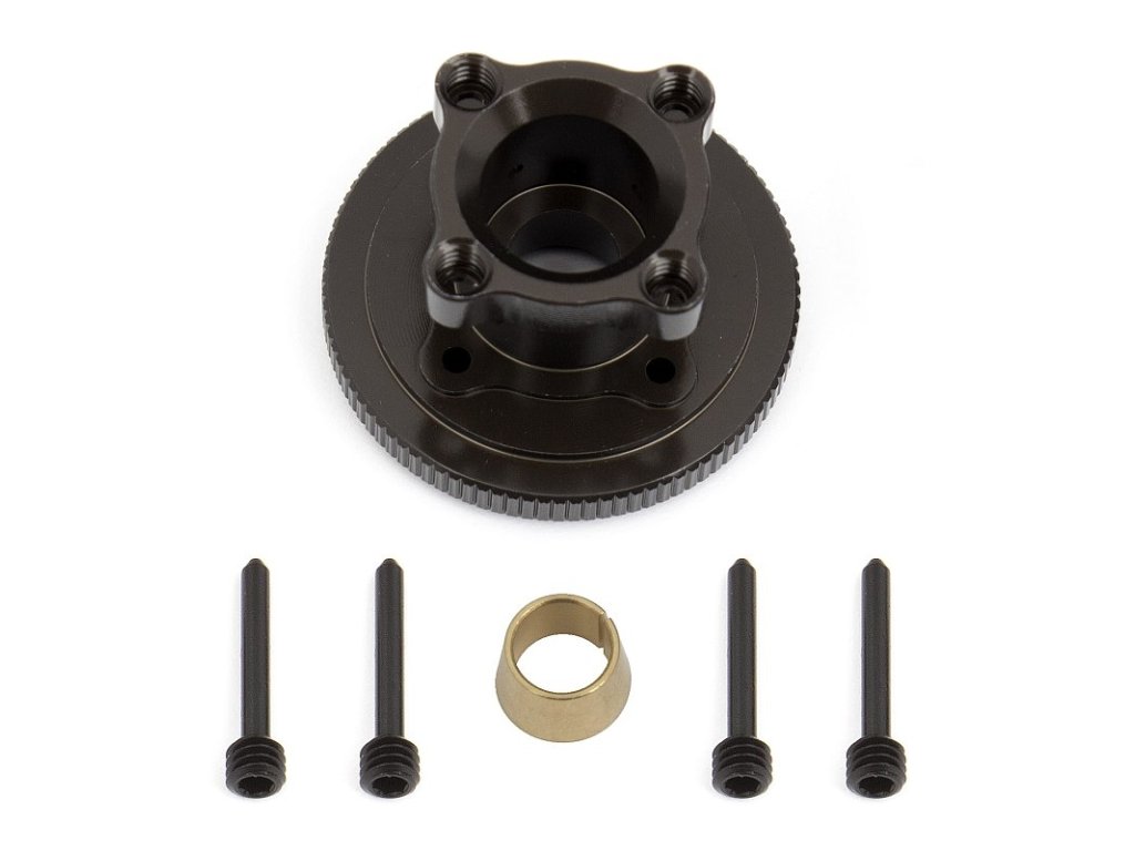 Hliníkový setrvačník čtyřčelisťové kompletní spojky včetně mosazného kuželu a čepů